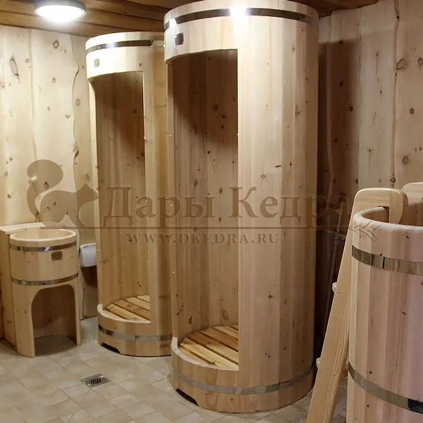 Финская сауна, купель и душевая кабина из кедра в центре здоровья и красоты «Релакс» (г. Новосибирск)