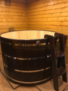 Это герметичная емкость для воды из кедра, которая предназначена для отдыха и охлаждения тела после процедур парения. Благодаря круглой форме, купель хорошо впишется в любое помещение. Так же подойдет для установки на открытом воздухе. Для удобства пользования оснащена лавочками, приставной и внутренней лестницей из кедра. За счет стяжных болтов обручи из нержавеющей стали плотно прилегают к кедровой купели. Это позволяет равномерно распределять нагрузку воды и сохранить форму изделия в период эксплуатации. При правильном уходе круглая купель для бани не рассыхается и не подвергается гниению.