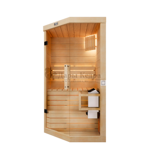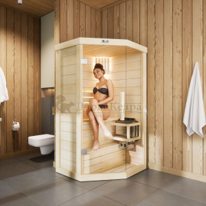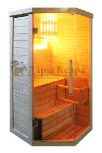 Одноместная угловая финская «Элит» сауна кабина из кедра и липы с электрокаменкой