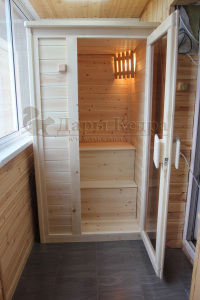 Одноместная финская сауна кабина из кедра и липы с электрокаменкой